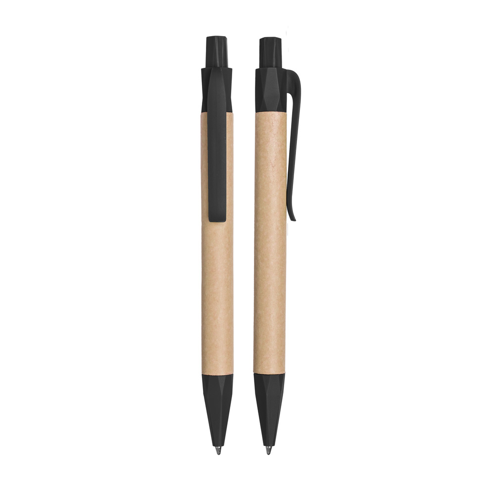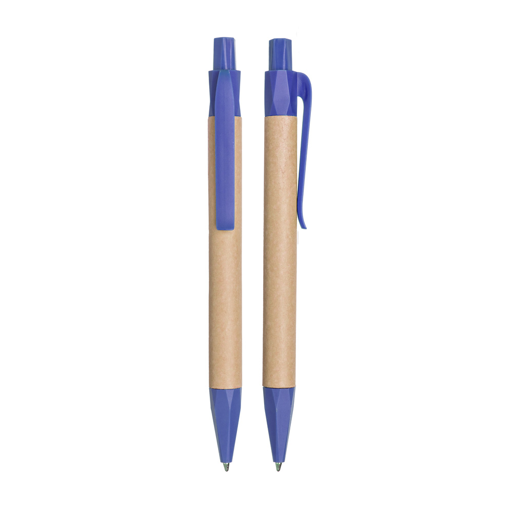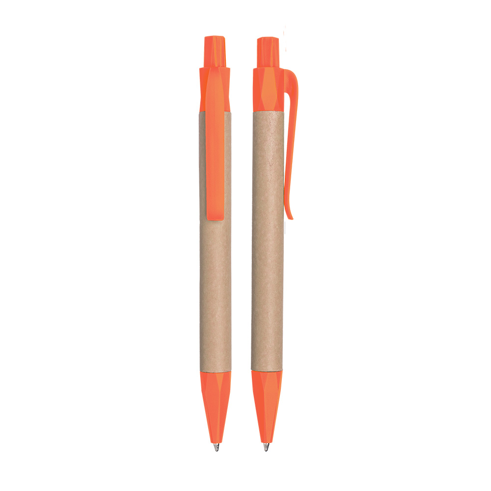 Caneta corpo em papel reciclado com detalhes em plástico PLA biodegradável.