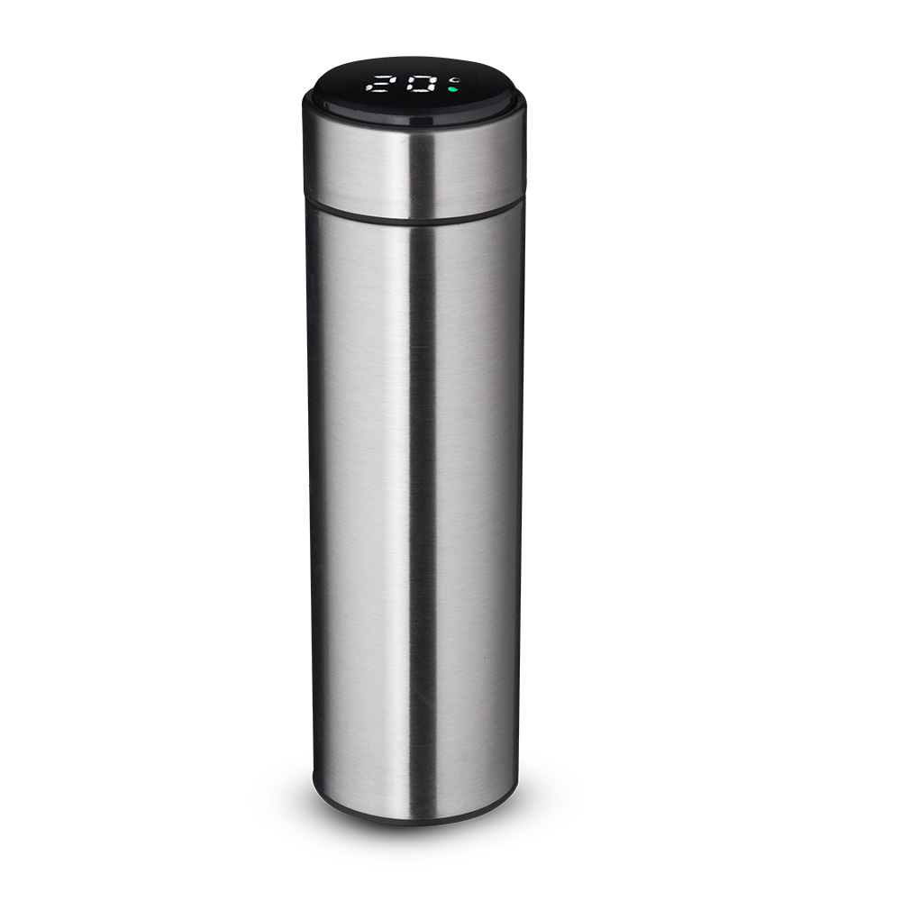 Display LED com termômetro digital na tampa para indicar a temperatura do líquido. Possui tampa removível para a troca da pilha.
