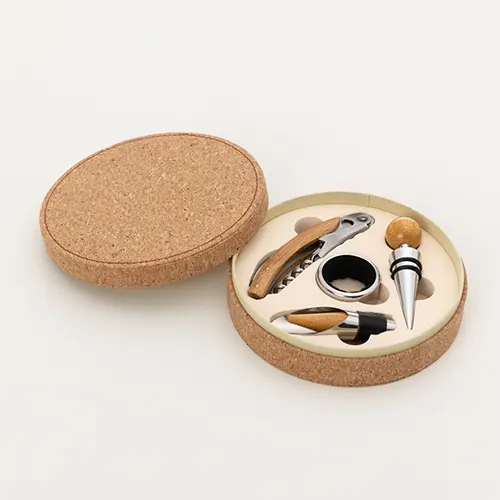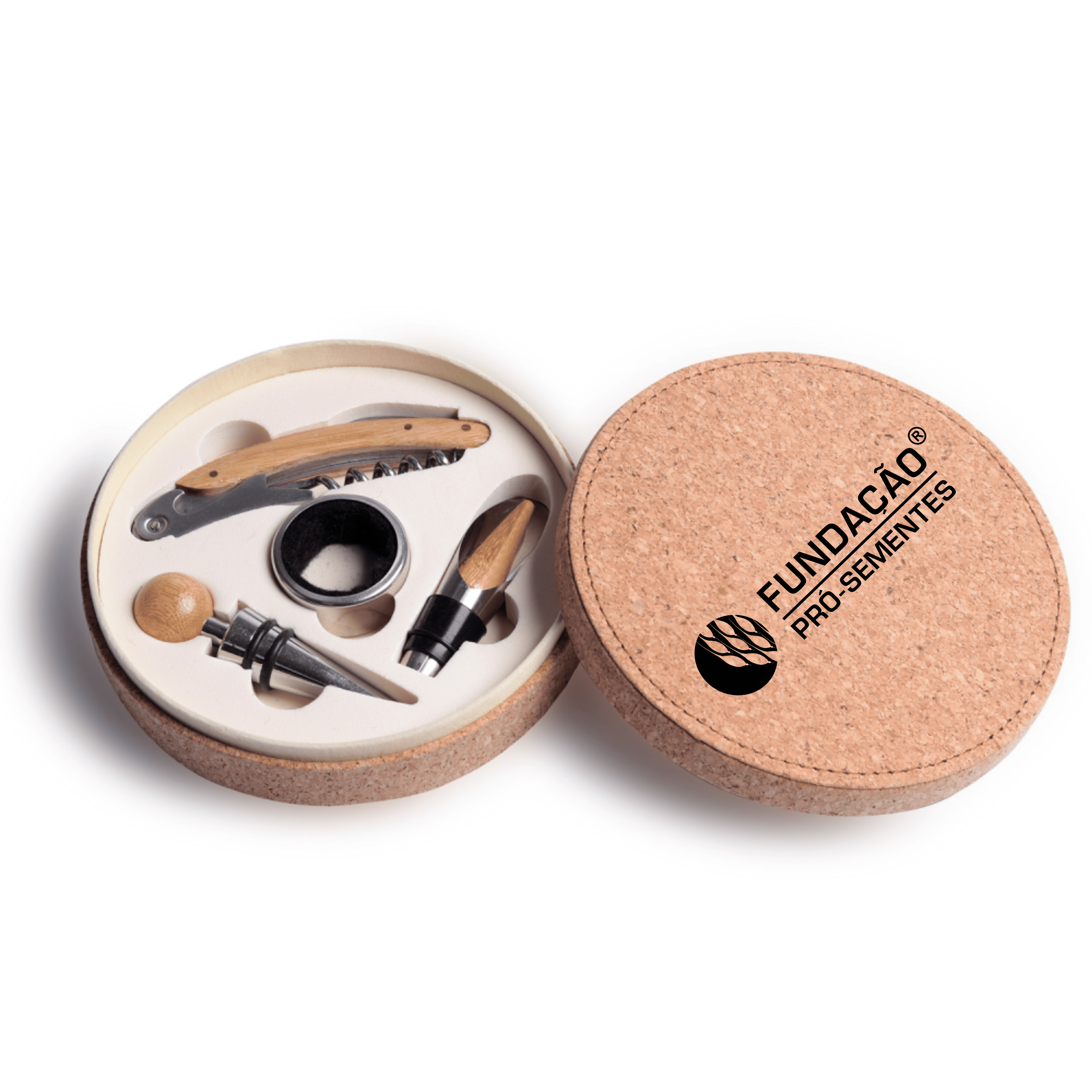 Saca rolha de metal com detalhes em bambu e cortador de lacre;